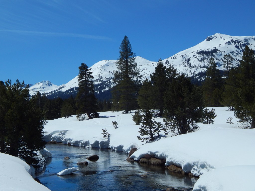 In April of 2023 a few friends and I made our annual snowshoe trip in the Sierra Nevada Mountains. It was one of those heavy snow winters so we decided to traverse the milder snow level of three to four feet in Hope Valley. This choice made for a perfectly wonderful snowshoe hike along the meandering West Carson River.